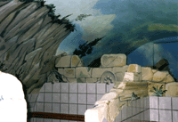 Die "Grotte" Ein freudloser Keller (unten) verwandelt sich in eine geheimnisvolle Welt aus Felsen und Ruinen. Ein Klassiker barocker Wandmalerei im modernen Gewand.