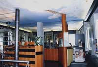 Diese Decke eines Ladengeschäftes in Karlsruhe ist ein schönes Beispiel für die Möglichkeiten der Deckenmalerei, einem Raum ein ganz neues Gepräge zu geben, und sogar zur Unterhaltung beizutragen.